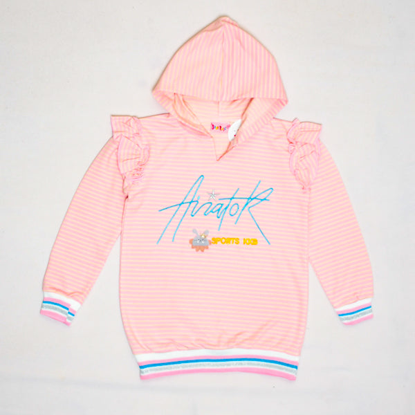 Girls superbly soft Hoodie sweatshirt with Frilled shoulders for stunning look. Glitter lining style at sleeves and...