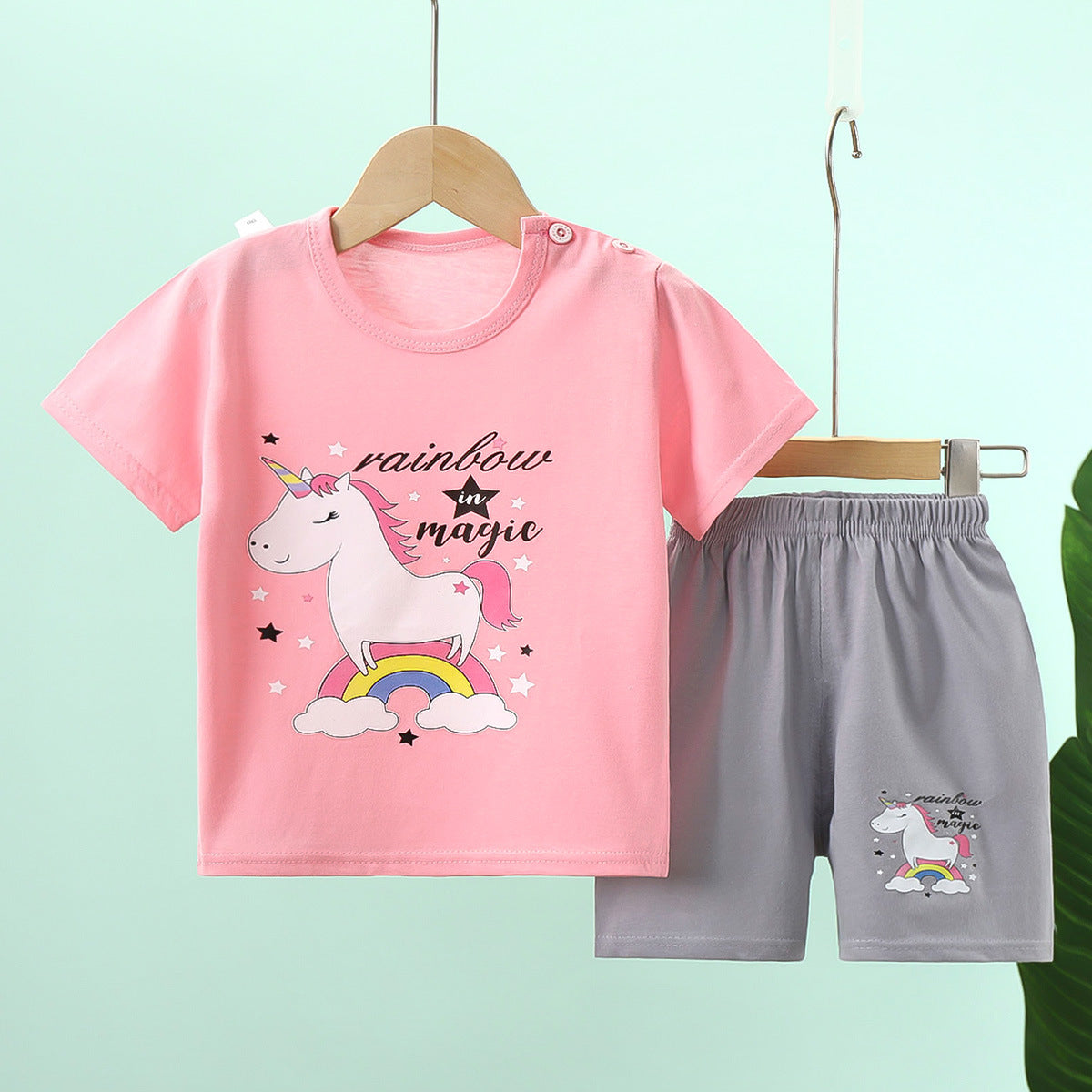 Baby Girl Toddler Girl Rainbow Magic Unicorn Character Shirt & Shorts Set – Stylish Summer Outfit for Girls