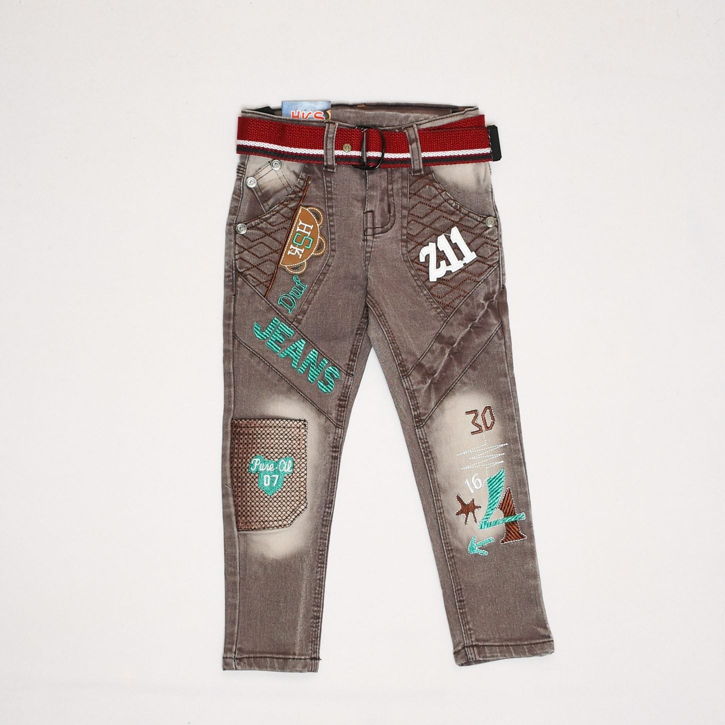 Jeans pants with waist adjuster. Stretchable fabric with thread woven belt. Fabric: Thick blended cotton Season: Fall/...