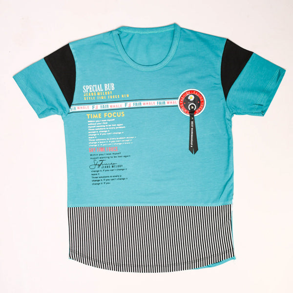 Boys Round Neck Time Focus Half Sleeves T Shirt