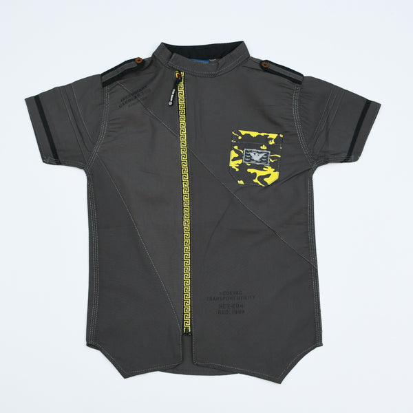 Casual Wear Ban Neck Zipper Up Boys Shirt