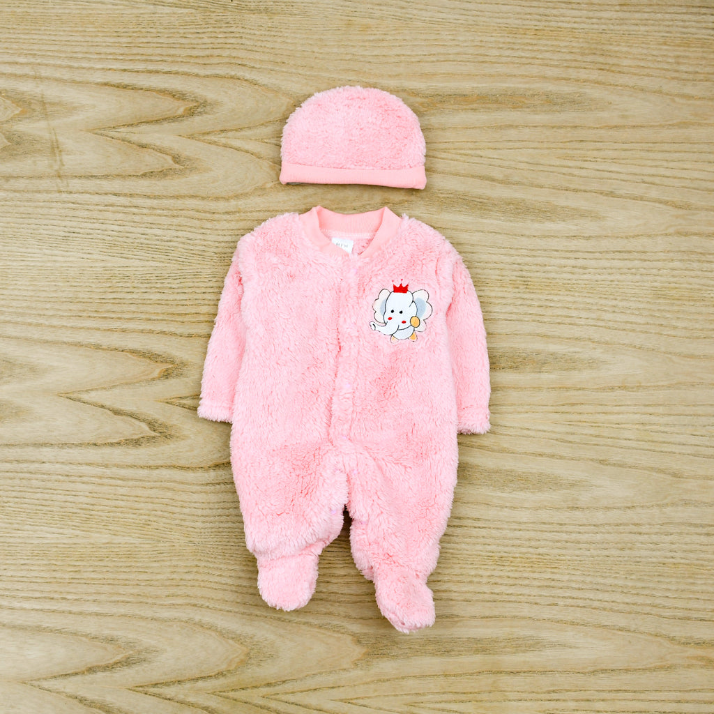 Closed Feet Fleece Jumpsuit Infant Newborn Elf Snowsuit Baby Girl Romper Cap Set