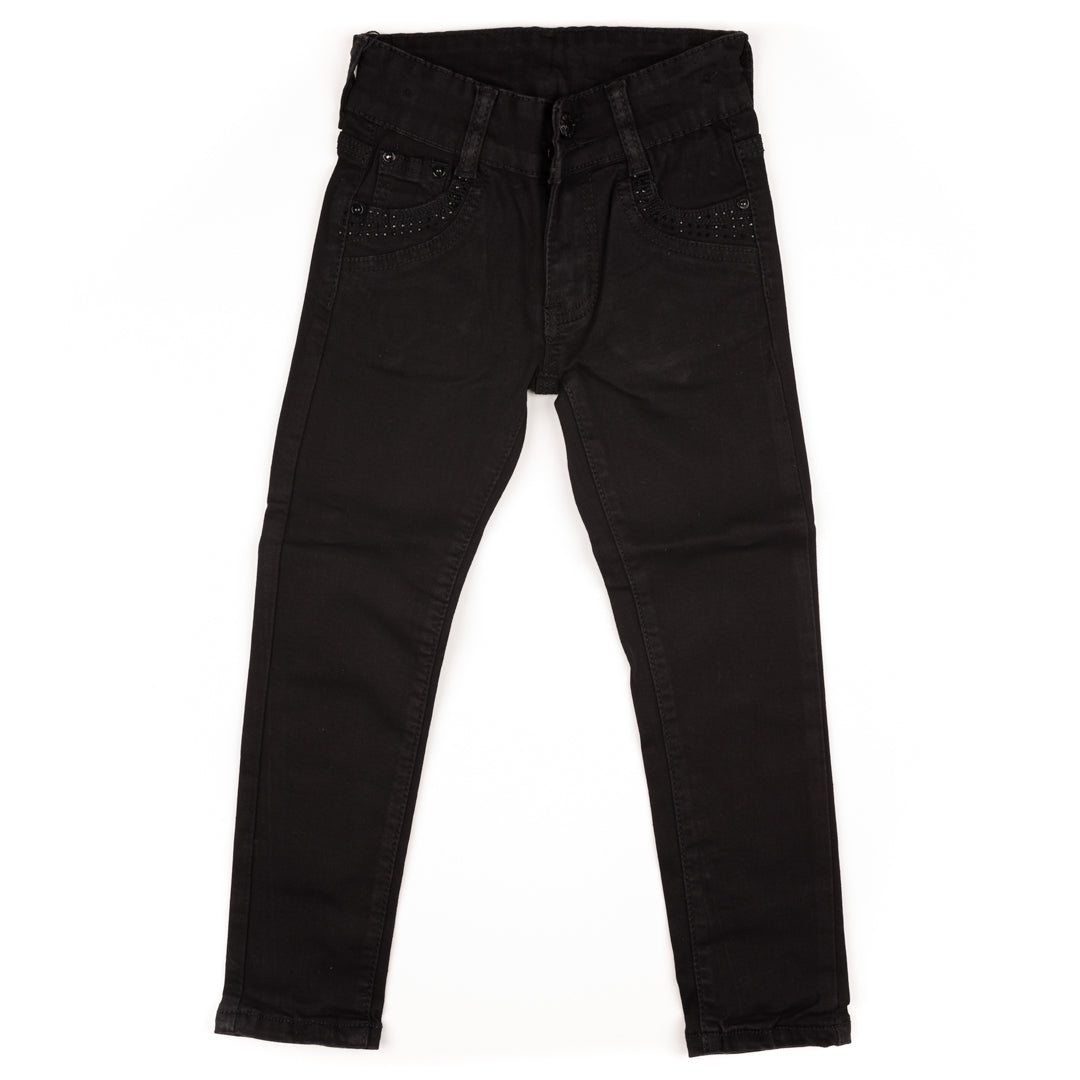 Embroidered Motif Black Soft Jeans Girl Pants