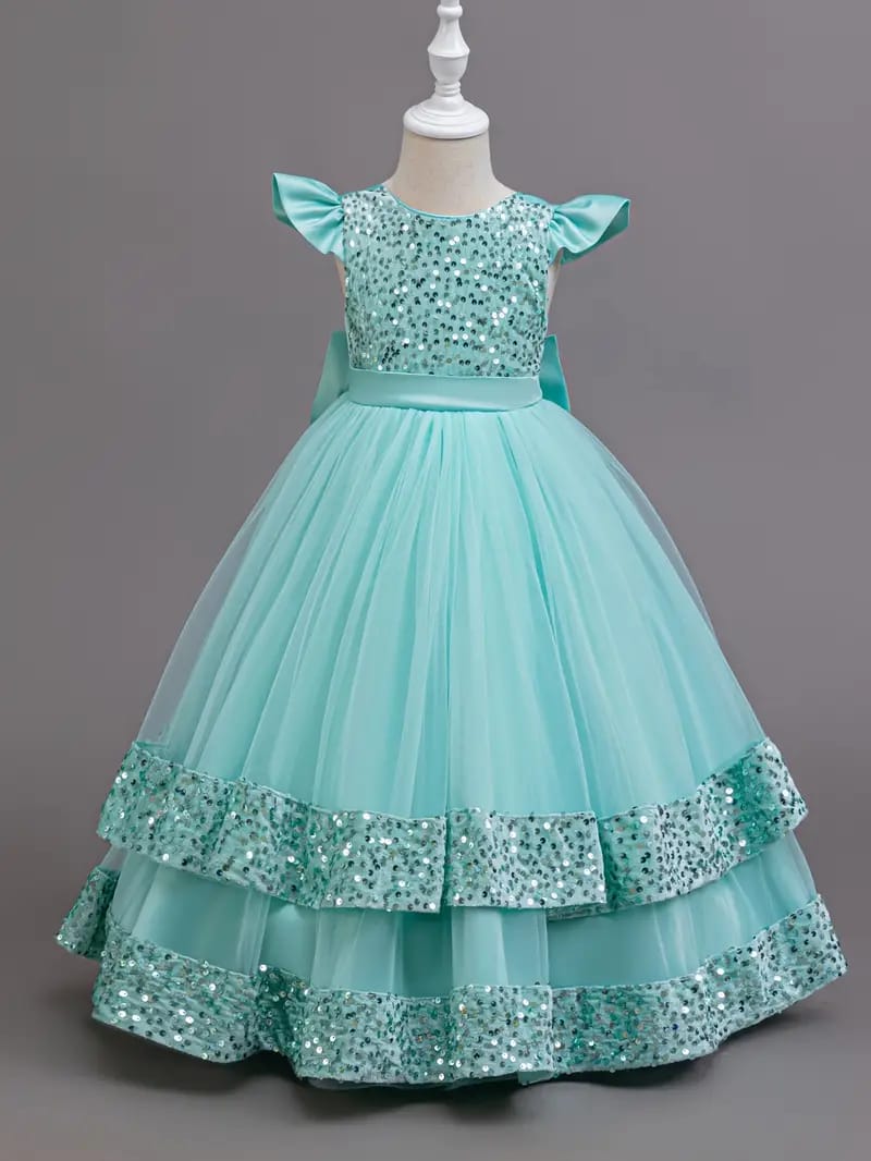 Turn every moment into a fairy tale with our Girls Pageant Maxi Dress featuring delicate butterfly sleeves, sparkling sequin details, and a dramatic full-length silhouette. Designed for pageants, birthdays, weddings, Eid and special occasions, this enchanting gown makes a bold statement with a large back bow and shimmering accents from top to hem.