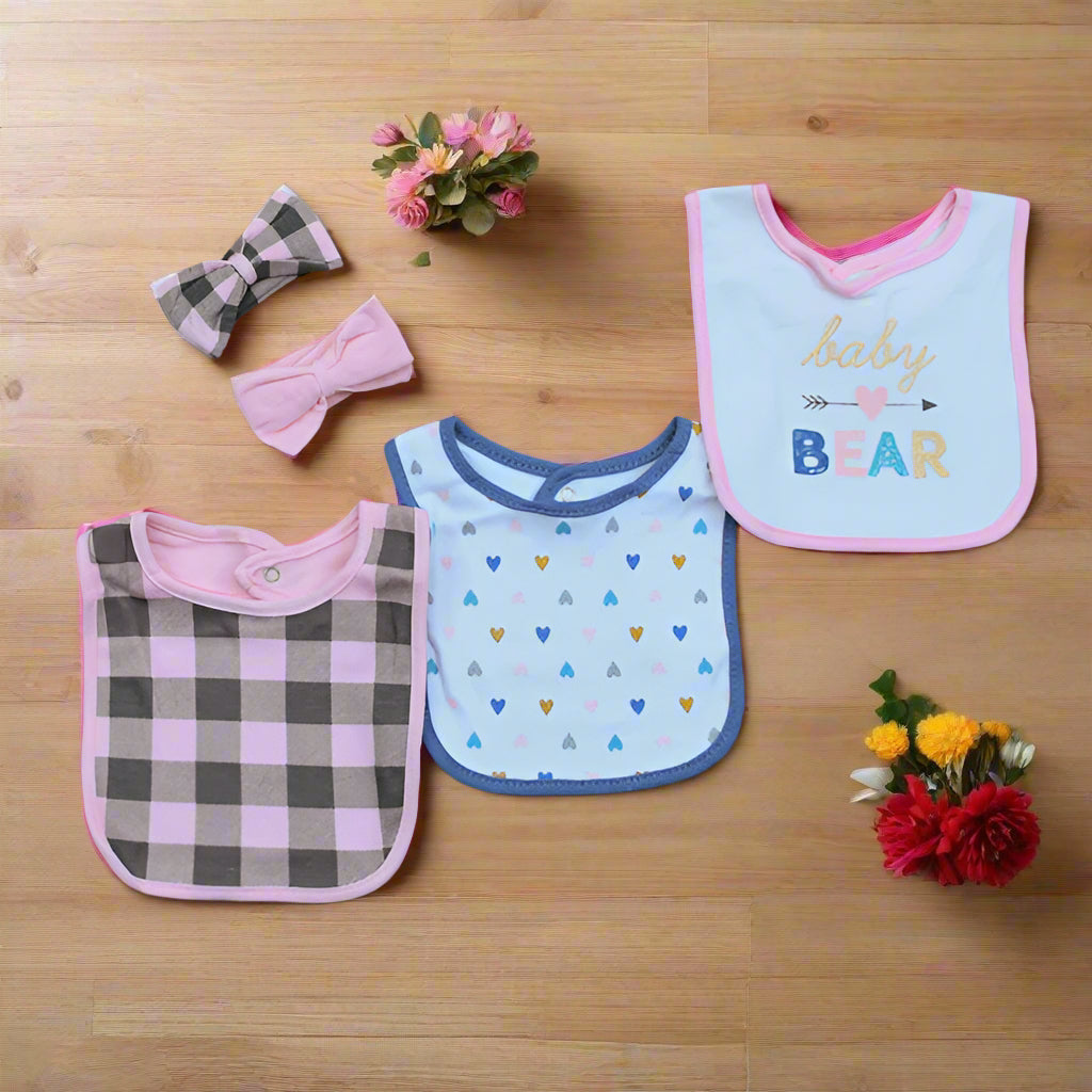 Hudson Baby Bear 5-Pieces Bib & Headband Set