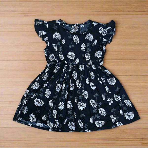 Leafy Floral Print Butterfly Sleeves Girl Summer Frock