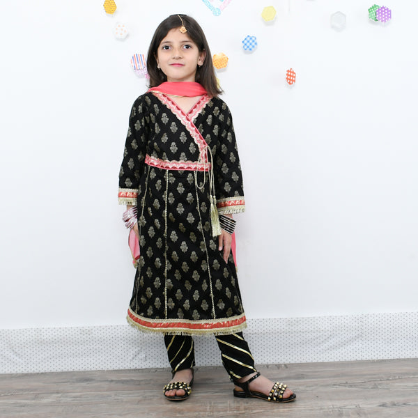 Multipanel Girls Angrakha Style Frock, Pajama & Dupata Dress