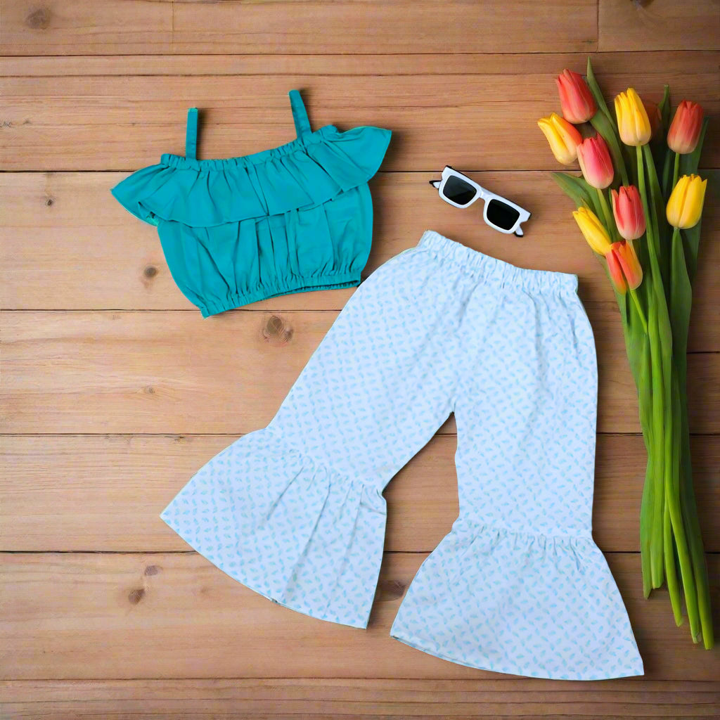 Make your little girl shine this summer with our stylish Off-Shoulder Top and Cool Print Gharara Pants Set – a fashionable choice for warm-weather outings, festive events, or casual get-togethers. The trendy off-shoulder design adds a touch of elegance, while the flowy printed gharara-style pants ensure all-day comfort and a traditional-modern fusion look.