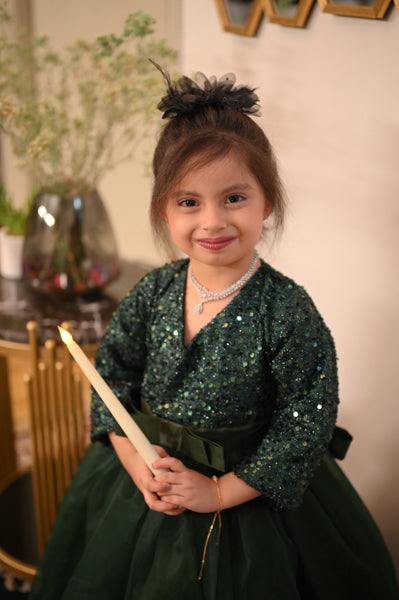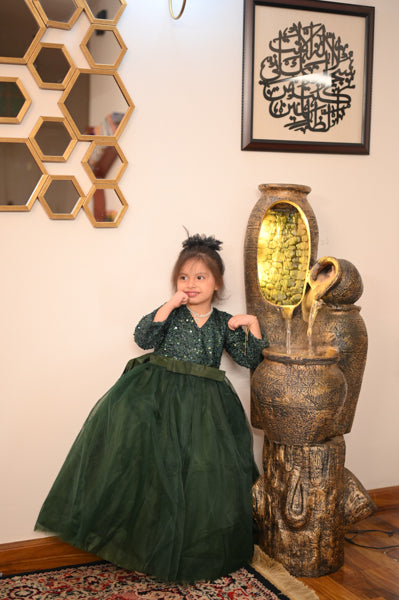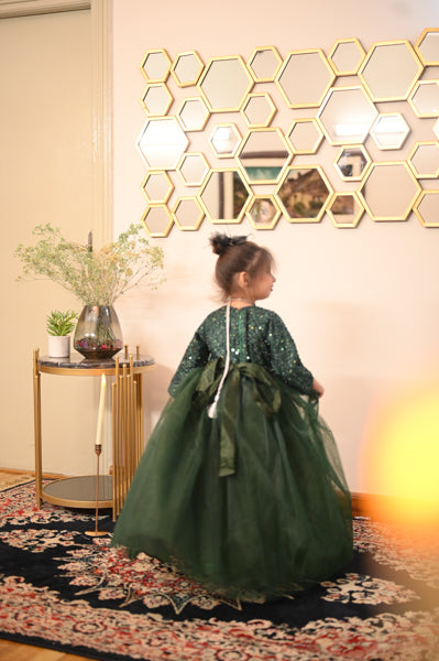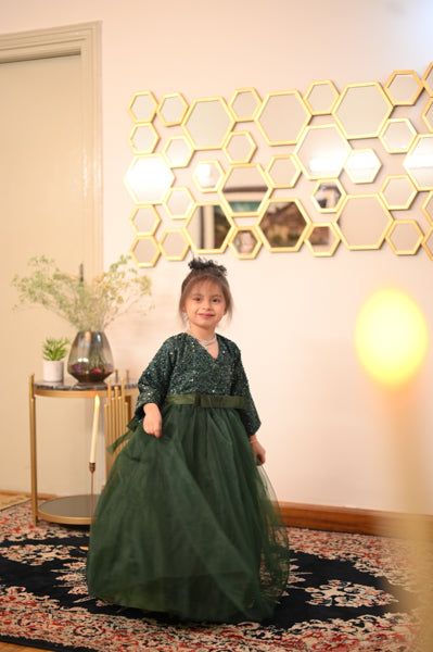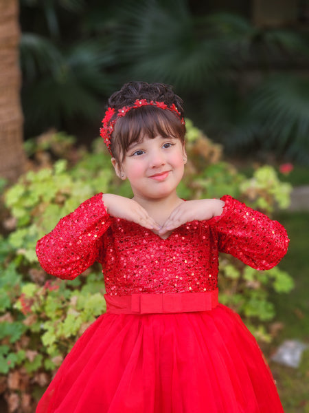 Bring the magic to every occasion with our Sparkle Belle Gown — a bold and beautiful dress designed to make your little girl feel like the star of the show. With its dazzling sequin top, graceful full skirt, and charming bow detail, this gown is perfect for parties, weddings, and all things fabulous.
