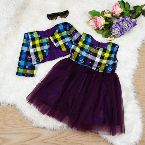 Introducing a super stylish addition to your princess's wardrobe! This dress features a long-sleeved flannel shrug with...
