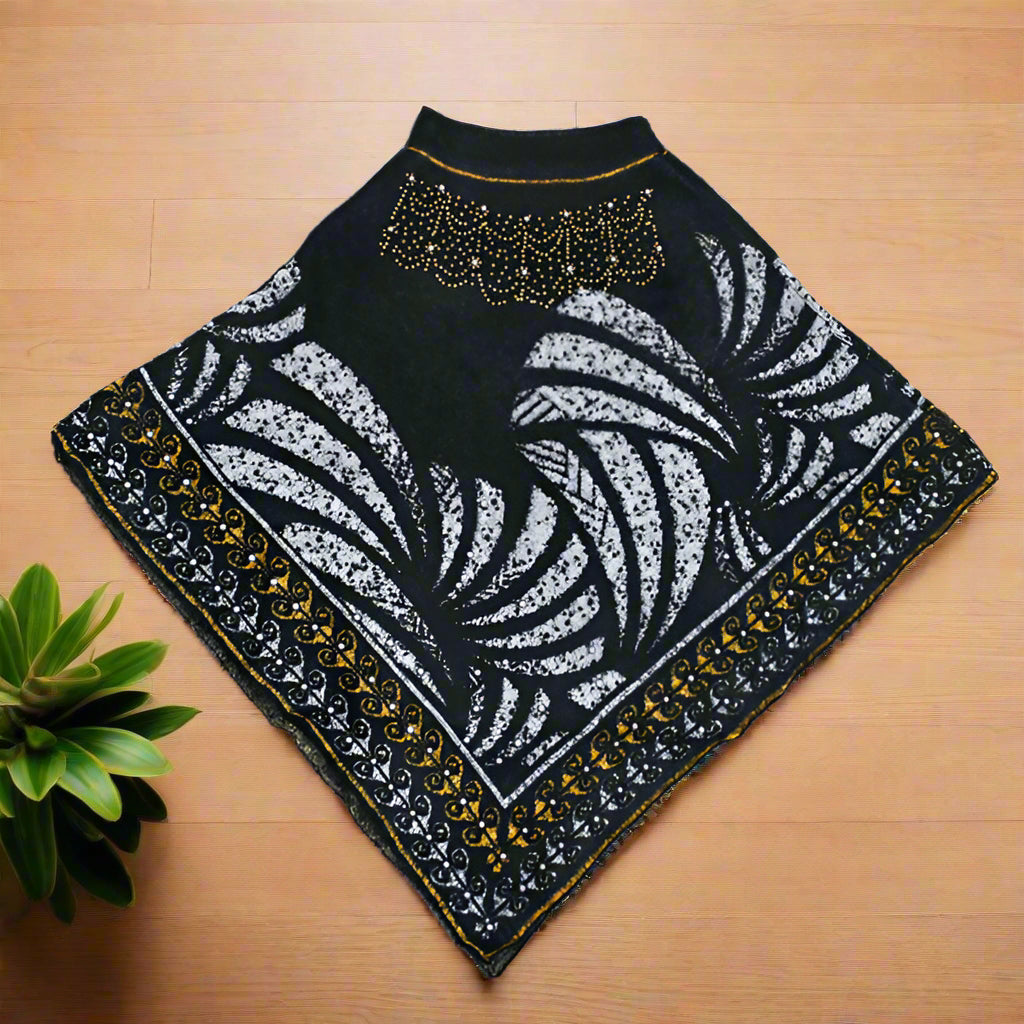 Superior Quality Lamb Wool Round Neck Girls Cape Shawl with Beads