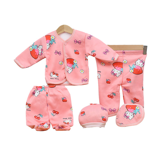 5 pieces New Born Tractor starter set including a V-Neck Button Down Full Sleeves Shirt. A Straight Trouser. One Botties extended Pajama with one Cap and one Bib.